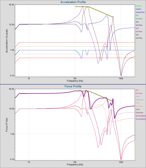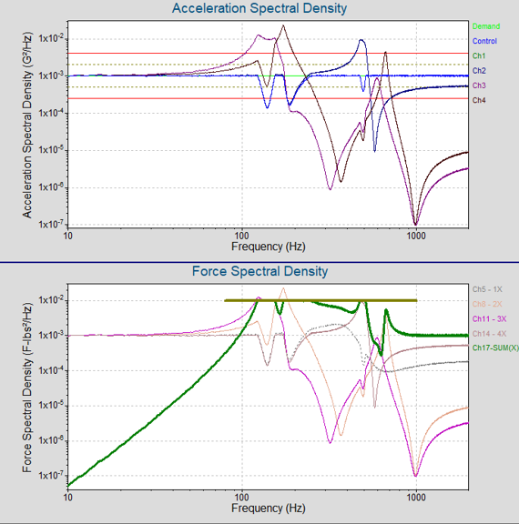 For example, VibrationVIEW can compute the live vector force at multiple points/axes and apply a force limit to the vector force.