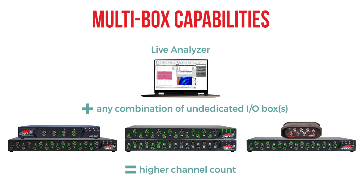 Live Analyzer can connect to any VR hardware device for data recording and analysis. The ObserVR1000, VR9700, and VR10500 function as vibration controllers and data acquisition devices.
