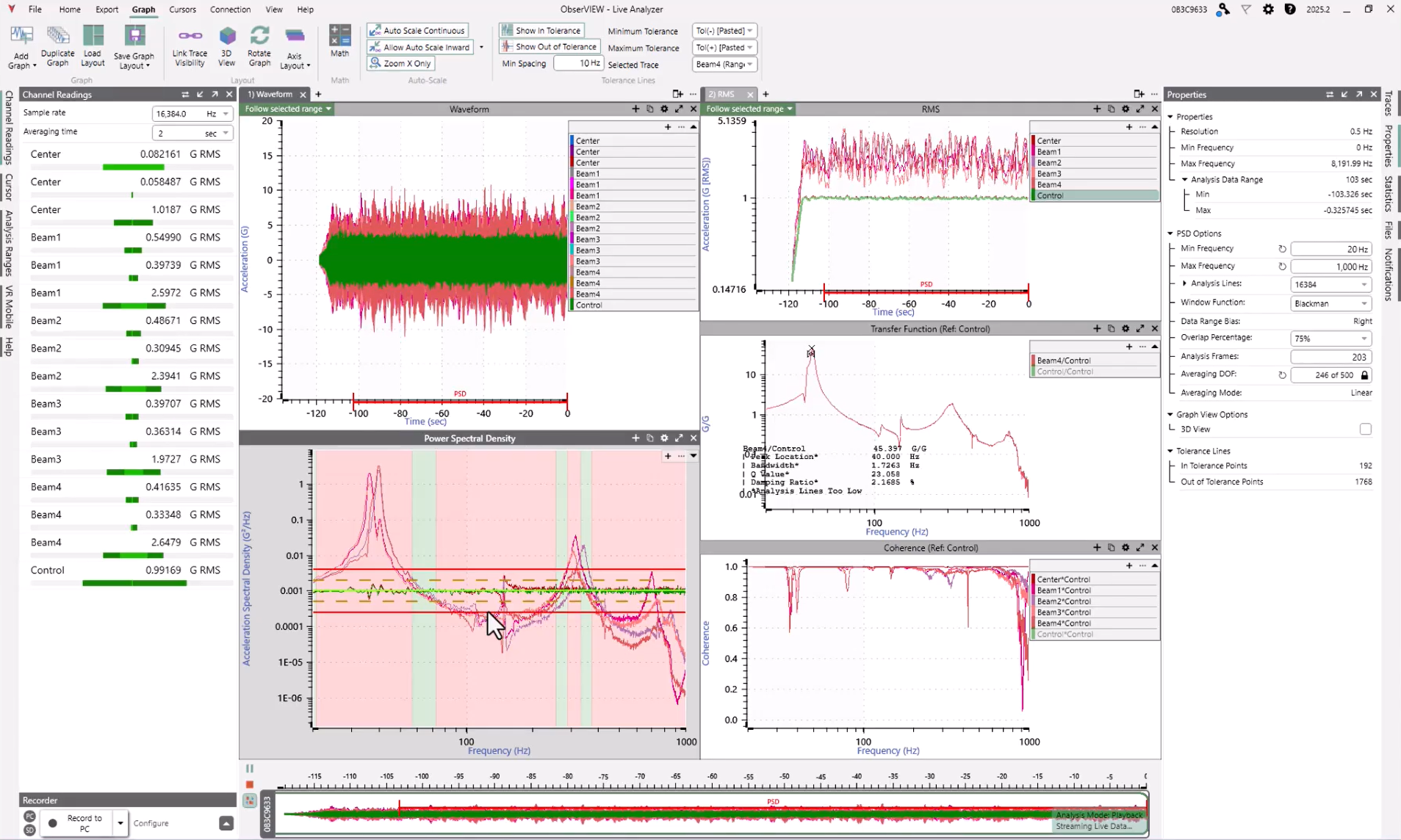 In a Live Analyzer session, access to ObserVIEW’s analysis tools while live data are streamed in from the device. Pause/stop the incoming data to perform a more in-depth analysis.
