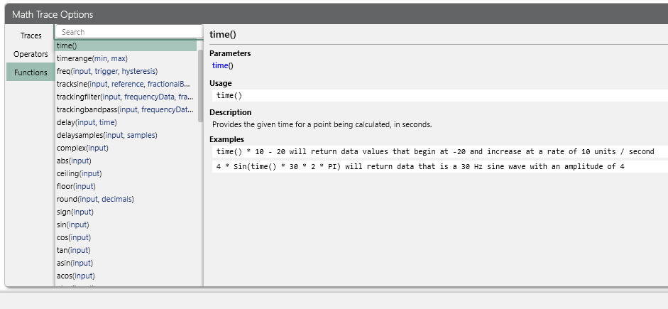 ObserVIEW Math is a free entry field that builds a trace by applying functions/operators to existing trace data.