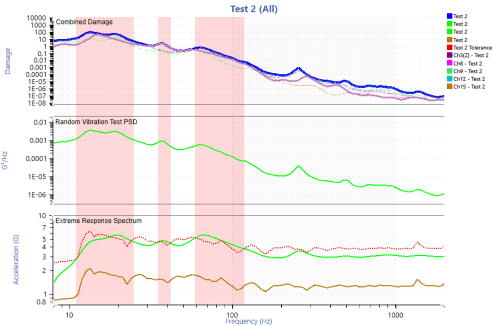 The process was repeated but for using the correct number of miles of 44.3. The calculation of life cycles assumed 200,000 miles, used Kurtosis, and was calculated for a targeted runtime of 2 hours and a follow up runtime which kept the Extreme Response Spectrum below the upper limit.